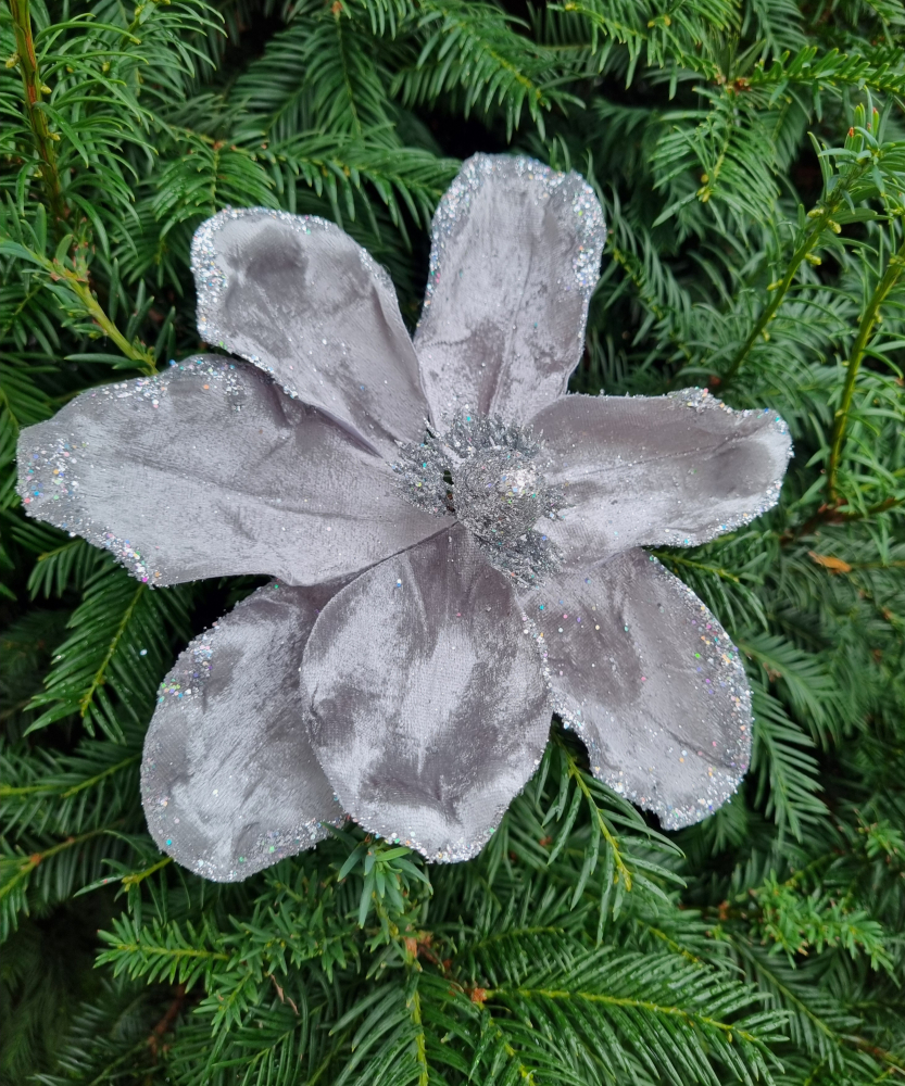 Vianočná ruža má bohato zdobené listy s jemnými trblietkami , ktoré pridávajú na luxusnom dojme. Každý detail bol vytvorený s dôrazom na kvalitu, takže kvet pôsobí naživo a elegantne.