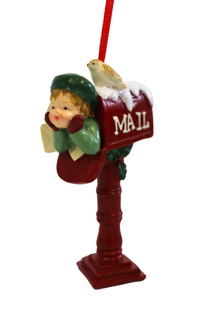 Červená poštová schránka je vhodná na zavesenie na vianočný stromček.
