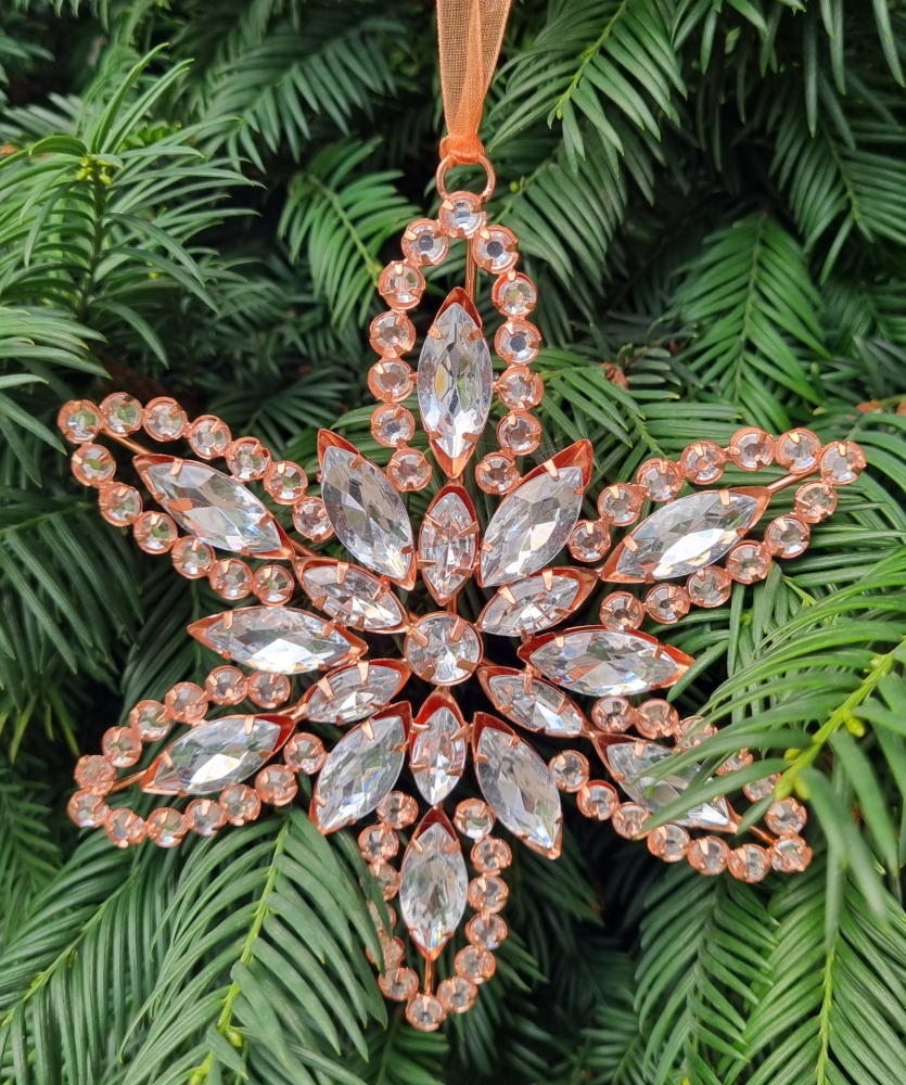 Vločka ( ružové-zlato ) je dokonalou voľbou, ak chcete vytvoriť luxusnú a štýlovú atmosféru vo vašom domove počas sviatkov. S touto krásnou vianočnou ozdobou v tvare snehovej vločky.Tiež ju môžete použiť ako ozdobu do vianočných dekorácií a adventných vencov.