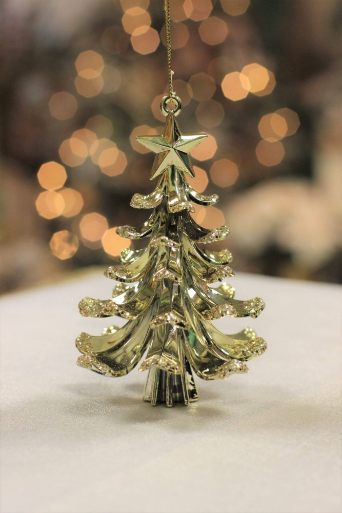 Ak chcete oživiť svoju vianočnú výzdobu, táto kovová závesná dekorácia na stromček v zlatej farbe s trblietkami je pre vás skvelou voľbou. Detailne spracovaná ozdoba je veľmi pekným doplnkom na váš vianočný stromček alebo girlandu.