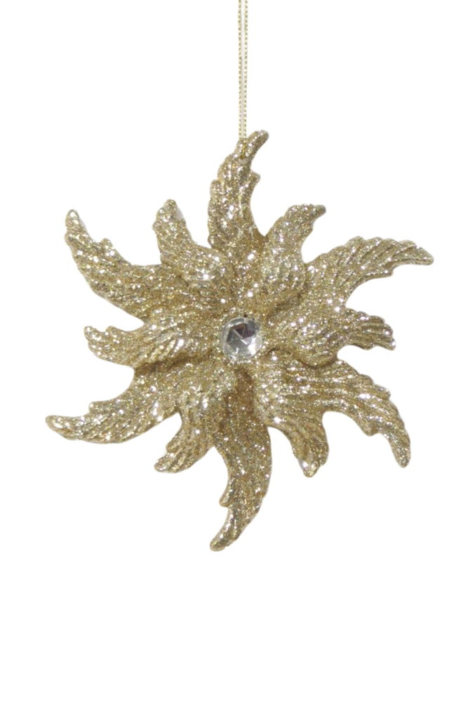 Závesná vianočná ozdoba v tvare kvetu s trblietkami je krásnym doplnkom na vianočný stromček. Ozdoba do bytu navodí tú správnu vianočnú atmosféru. Vďaka jej nadčasovej elegancii ju môžete používať opakovane po mnoho rokov.