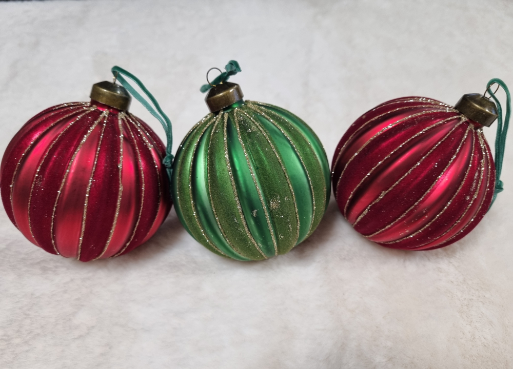 Vianočná guľa ozdoba na zavesenie so zaujímavá tvarom dizajnom a zamatovým povrchom.Klasika medzi vianočnými ozdobami: jednoduchú a vznešenou sklenenú guľu ľahko skombinujete s ostatnými vianočnými ozdobami. Či už túžite po harmonicky zladených farbách alebo máte radi pestrofarebný stromček.