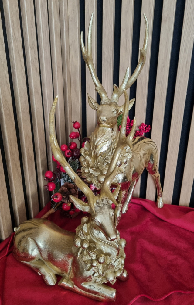 Ležiaci jeleň v zlatej farbe okrem majestátneho parožia sa pýši krásnymi detailmi zdôrazňujúcimi jeho bežné proporcie. Vďaka výraznej trblietavej farbe navodí sviatočnú náladu a premení každý interiér na atraktívnu, bez ohľadu na vaše dizajnové preferencie. K čaru Vianoc nepochybne patria aj rôzne vianočné figúrky. Vianočné figúrky ozdobia domov, navodia čarovnú vianočnú atmosféru, v ktorej sa posilní puto rodinnej pohody a lásky.