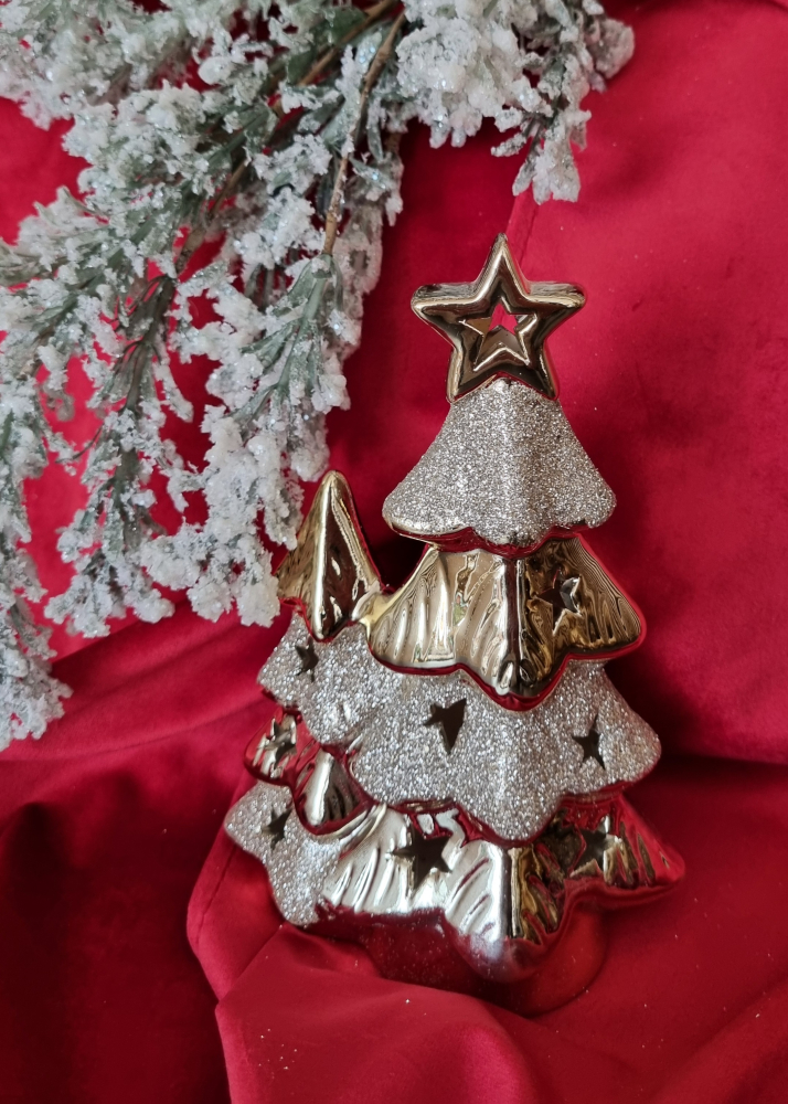 Keramický vianočný stromček – krásne vyrobený trblietkavý, naplnený svetlom, vytvára v miestnosti teplú, útulnú atmosféru.