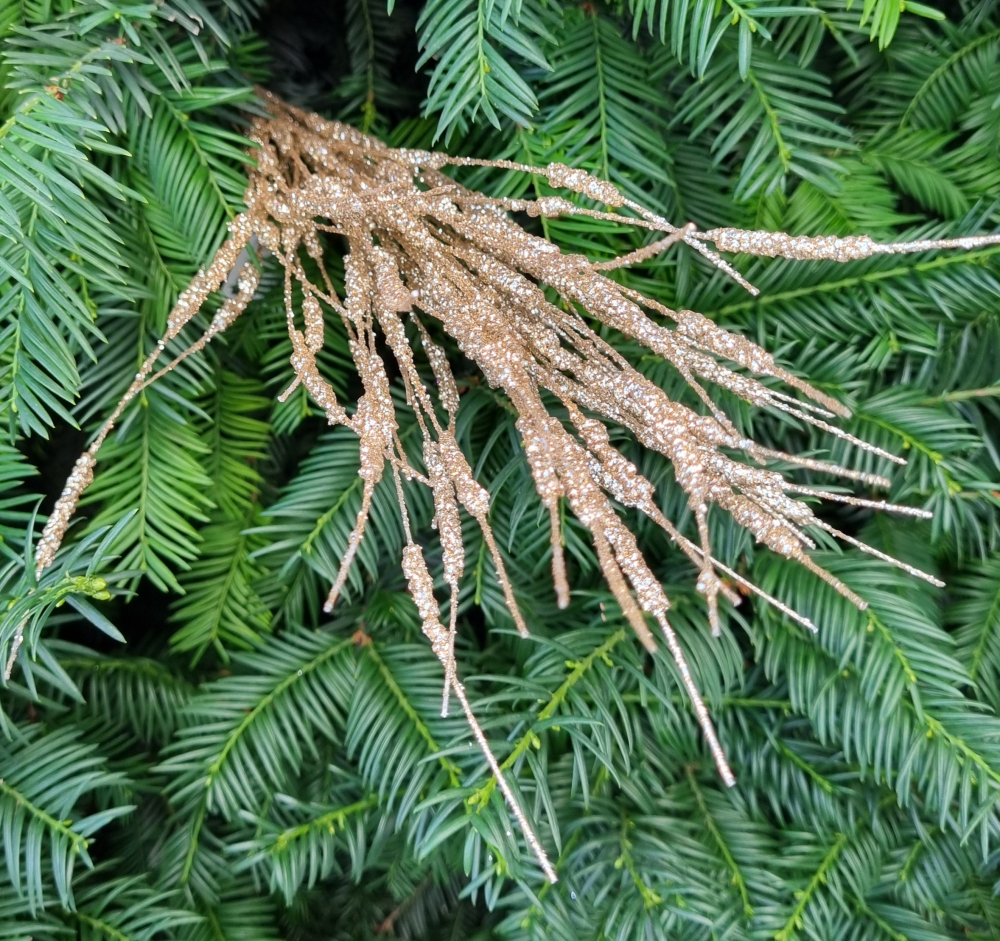 Pripravte svoj domov na nezabudnuteľné sviatky s touto vianočnou vetvičkou, ktorá očarí svojím zlatým prevedením. Je to dekorácia, ktorá vnesie eleganciu, jas a radosť do každej miestnosti či aranžmánu.
