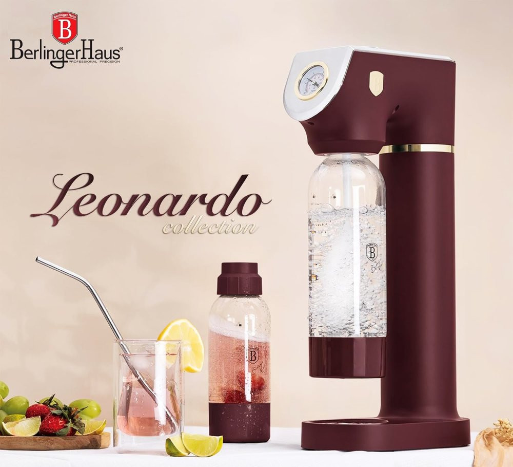 Výrobník sódy Sodabar je dizajnovo dokonalý domáci spotrebič na výrobu perlivých nápojov. Tento kompaktný a štýlový prístroj je vyrobený z nehrdzavejúcej ocele a polypropylénu a je navrhnutý tak, aby zapadol do každej kuchyne. S rozmermi 43,5 cm x 22 cm x 12 cm sa zmestí na každú kuchynskú linku.Výrobník sódy Sodabar sa dodáva s dvoma fľašami s objemom 1,0 l a 0,5 l. Prístroj je kompatibilný so štandardnými bombičkami CO2 so skrutkovacím uzáverom akejkoľvek značky (nie sú súčasťou balenia).Vďaka zabudovanému barometru môžete ľahko nastaviť úroveň perlivosti od veľmi jemnej až po vysoko perlivú sódu. A to všetko stlačením jediného tlačidla!Výrobník sódy Sodabar je ekologické riešenie, ktoré pomáha znižovať množstvo plastového odpadu. Navyše nepotrebuje elektrinu ani batérie, takže je ideálny na použitie úplne kdekoľvek.Vlastnosti - Materiál: nerezová oceľ, PP - Rozmery: 43,5 x 22 x 12 cm - 2 vymeniteľné fľaše s viečkom: 1,0 l a 0,5 l - Univerzálne kartuše CO2 štandardnej veľkosti (nie sú súčasťou balenia) - Barometer - úrovne od super jemnej až po silnú perlivú limonádu- Čerstvá sódová voda po stlačení tlačidla - Nie je potrebná elektrina ani batérie - Tlačidlo na prívod vzduchu - Dvojité bezpečnostné uvoľnenie tlaku udržuje proces bezpečný a čistý - Ekologické riešenie - pomáha znižovať množstvo plastového odpadu- Farba: matná bordová / ružovo zlatá- Kolekcia LEONARDO- značka: Berlinger Haus