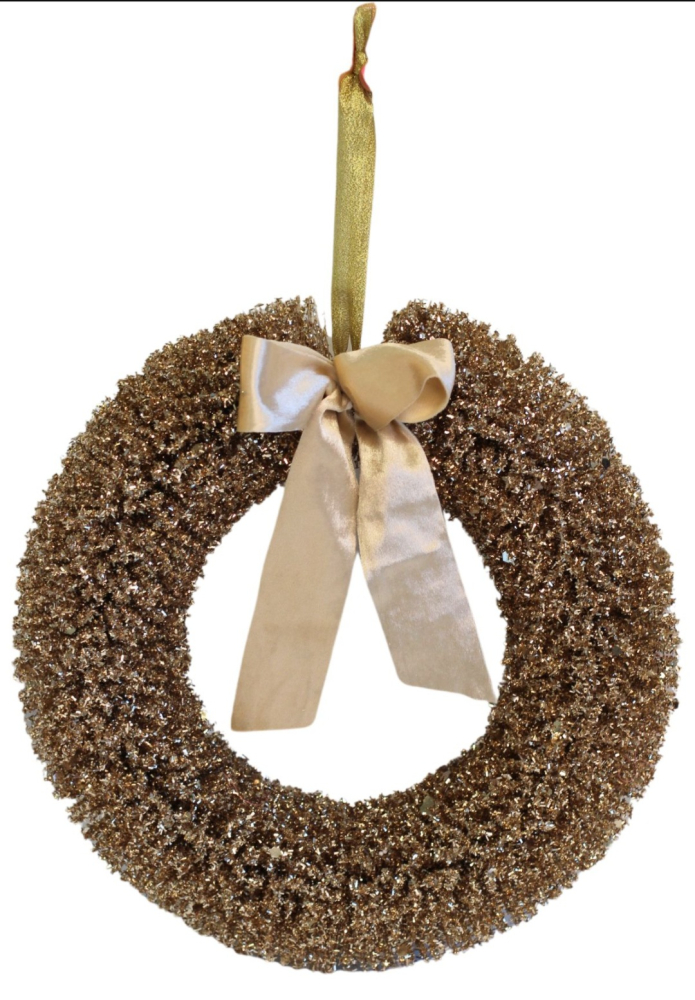 Vneste do svojho domova magickú vianočnú atmosféru s jedinečným vianočným vencom s priemerom 40 cm. Táto elegantná dekorácia v odtieni jemnej zlatej farby rozžiari každý interiér teplým, útulným leskom.